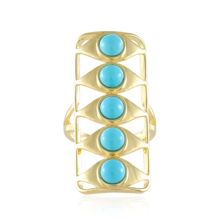 Dieser atemberaubende Ring ist mit fünf bezaubernden Dornröschen-Türkis-Cabochons aus den USA besetzt, die eine leuchtende, himmelblaue Schönheit darstellen. Gefertigt aus hochwertigem 925er Sterlingsilber mit eleganter Goldplattierung, bietet er einen luxuriösen Touch. Dieses Schmuckstück eignet sich sowohl für die Freizeit als auch für formelle Anlässe und wird mit seiner auffälligen Farbe und seinem raffinierten Design jedes Outfit ergänzen.