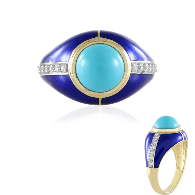 Dieser auffällige Sleeping Beauty Türkisring mit einem atemberaubenden runden Cabochon von 1,62 Karat aus den USA ist ein echter Hingucker. Der lebhafte Türkis wird durch 12 kambodschanische Zirkon-Akzente wunderschön ergänzt, die dem fesselnden Design Glanz verleihen. Dieses Schmuckstück aus 925er Sterlingsilber mit Goldplattierung eignet sich perfekt, um jedem Outfit einen farbigen Akzent zu verleihen, und ist daher sowohl für legere als auch für formelle Anlässe geeignet.