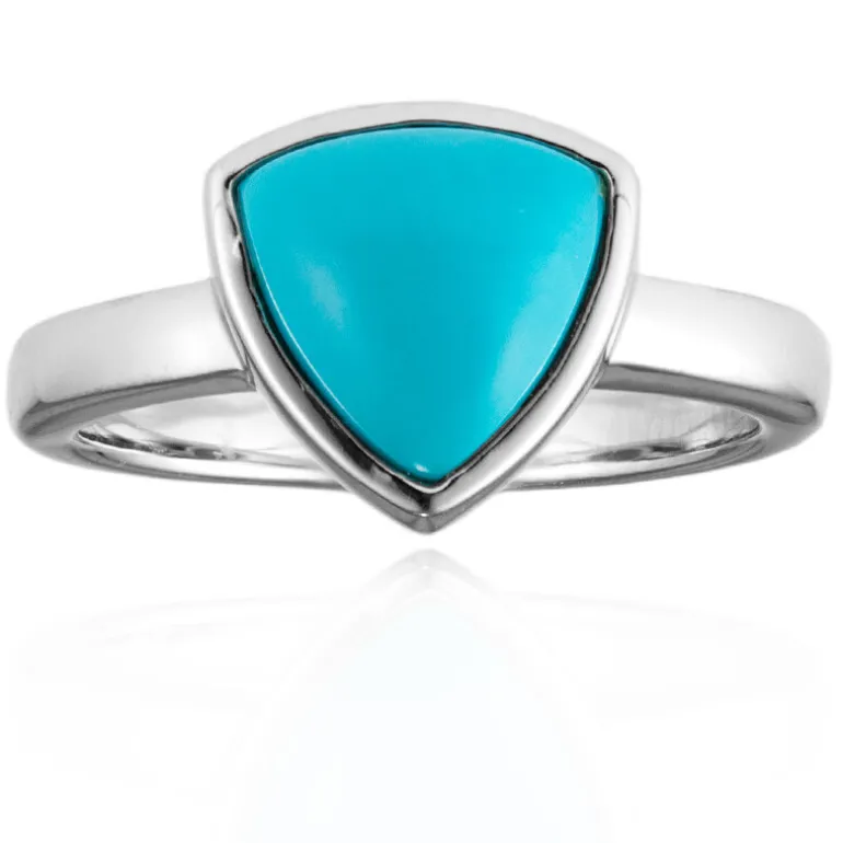 Entdecken Sie die Pracht dieses bezaubernden Sleeping Beauty Türkisrings mit einem 1,575-karätigen Trilliant-Cabochon, der den leuchtend himmelblauen Farbton des Edelsteins zur Geltung bringt. Das schlanke Band aus hochwertigem 925er Sterlingsilber ergänzt die natürliche Schönheit des Türkises perfekt. Der Edelstein, der aus den renommierten Minen in den USA stammt, wird für seine Reinheit und intensive Farbe geschätzt. Dieses Schmuckstück ist ideal, um im Alltag einen farbigen Akzent zu setzen und lässt sich mühelos in eine elegante Abendgarderobe verwandeln. Kombinieren Sie es mit einer frischen weißen Bluse oder einem Cocktailkleid, um Raffinesse auszustrahlen.