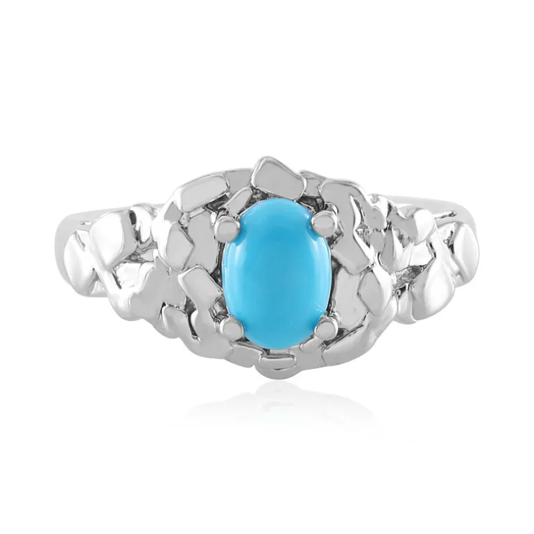 Entdecken Sie die Anziehungskraft des amerikanischen Südwestens mit diesem schicken Ring aus platiniertem 925er Sterlingsilber, der einen fesselnden ovalen Cabochon Sleeping Beauty Türkis von 0,632 Okt. enthält. Der leuchtend blaue Edelstein, eingebettet in eine einzigartige gemusterte Fassung, erinnert an den klaren Himmel und die Weite des Landes. Dieser Ring ist ideal, um sowohl lässigen als auch formellen Outfits einen Farbakzent zu verleihen, und ist eine vielseitige Ergänzung für jede Schmucksammlung. Mit seinem ruhigen Farbton setzt er bei jeder Gelegenheit einen eleganten Akzent.