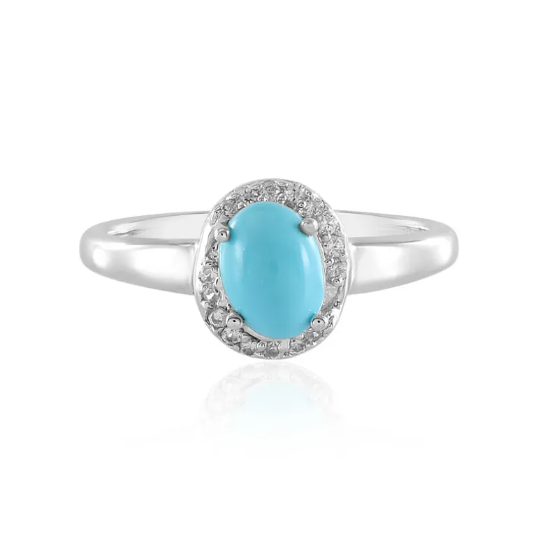 Entdecken Sie die Faszination des amerikanischen Südwestens mit diesem Ring aus Sterlingsilber, gekrönt von einem fesselnden ovalen Cabochon Sleeping Beauty Türkis (0,657 Karat) aus den USA. Für zusätzlichen Glanz sorgen 16 Zirkone im Rundschliff aus Kambodscha mit einem Gesamtgewicht von 0,099 ct, die den ruhigen blauen Edelstein anmutig umschließen. Mit einem Gesamtkaratgewicht von 0,756 ct. wiegt dieses Stück ca. 1,7 g und misst 23 x 19 mm, was jedem Ensemble einen Hauch von Eleganz verleiht. Er ist ideal für den eleganten Tag oder den eleganten Abend und passt sowohl zu legeren als auch zu formellen Anlässen.
