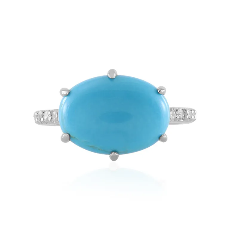 Entdecken Sie die Faszination des amerikanischen Südwestens mit diesem schicken Sleeping Beauty Türkisring, der mit einem ovalen Cabochon von 3,84 Karat besetzt ist. Eingerahmt von 8 funkelnden Zirkonen im Rundschliff aus Tansania mit einem Gesamtgewicht von 0,258 Karat, strahlt dieses Schmuckstück Eleganz aus. Das Design aus platiniertem 925er Sterlingsilber garantiert Haltbarkeit und Glanz. Dieser Ring eignet sich perfekt, um Ihrem Alltagsoutfit einen farbigen Akzent zu verleihen oder ein elegantes Abendkleid zu ergänzen und ist vielseitig einsetzbar.