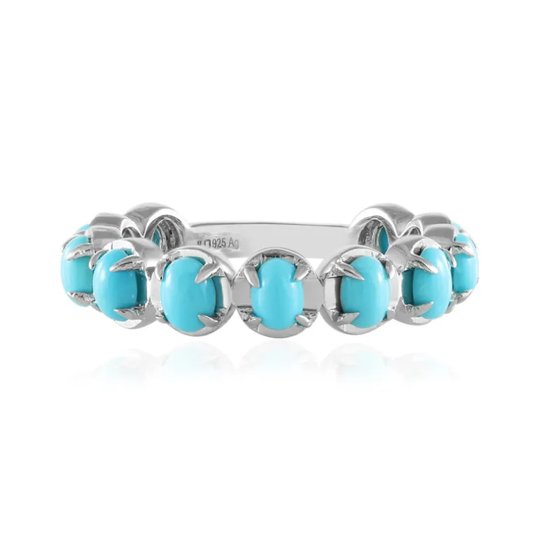 Entdecken Sie die Eleganz dieses Rings aus Dornröschen-Türkis mit 11 leuchtenden Cabochons aus den USA. In glänzendem platiniertem 925er Sterlingsilber gefasst, fängt jeder ovale Edelstein die heitere Schönheit eines ruhigen Himmels ein. Dieser Ring eignet sich sowohl für zwanglose Ausflüge als auch für elegante Abendessen und verleiht jedem Ensemble einen Hauch von Farbe, was ihn zu einer vielseitigen Ergänzung Ihrer Schmucksammlung macht.