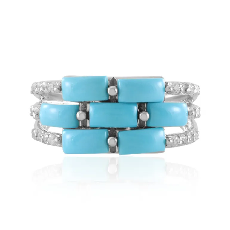 Entdecken Sie die Anziehungskraft des Sleeping Beauty Turquoise Silver Ring. Mit sieben leuchtenden Türkissteinen aus den USA und funkelnden Zirkon-Akzenten ist dieser Ring aus plattiertem Sterlingsilber ein wahrer Schatz. Sein auffälliges Design wertet jedes Outfit auf und macht ihn sowohl für legere als auch für formelle Anlässe geeignet. Werten Sie Ihre Schmucksammlung mit diesem raffinierten und zeitlosen Stück auf.