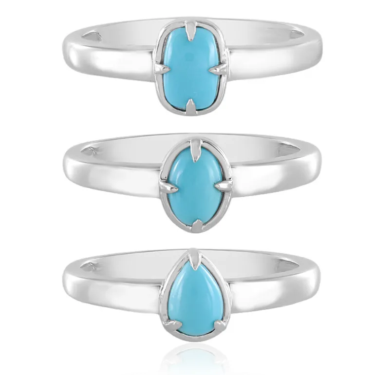 Entdecken Sie die Faszination des amerikanischen Südwestens mit diesem faszinierenden Set aus Sleeping Beauty Türkisringen. Dieses Trio, das für seinen makellosen rotkehlchenblauen Farbton berühmt ist, präsentiert Türkiscabochons von insgesamt 1,40 Karat in poliertem 925er Sterlingsilber mit schickem Platin-Finish. Die antiken, tropfenförmigen und ovalen Formen bieten vielseitige Stylingoptionen. Als Symbol der Weisheit und des Schutzes passen diese Ringe perfekt zum Bohème-Look und sind perfekt geeignet, um Ihrem Alltagsoutfit einen Hauch von Farbe zu verleihen.