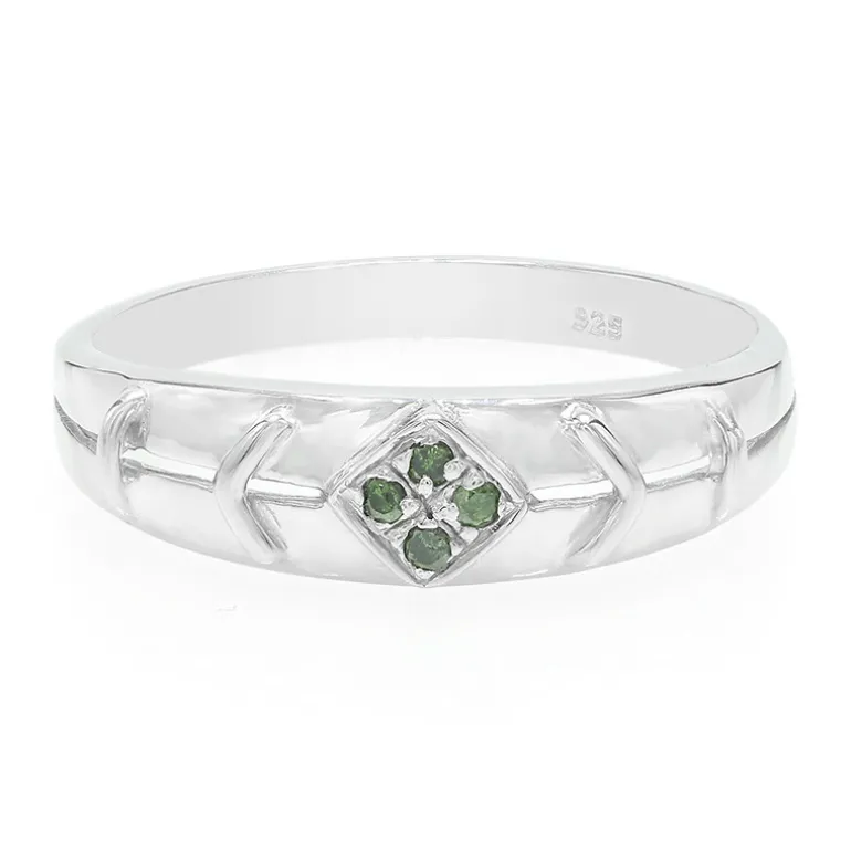 Dieser exquisite Silberring präsentiert vier schillernde smaragdgrüne Diamanten im Brillantrundschliff, die jedem Outfit einen Hauch von Eleganz verleihen. Er ist aus 925er Sterlingsilber gefertigt und bietet mit einem Gewicht von 1,72 g sowohl Stil als auch Haltbarkeit. Dieser Ring ist ideal für besondere Anlässe oder für den Alltag und lässt sich wunderbar mit leuchtenden Abendkleidern oder raffinierter Arbeitskleidung kombinieren.