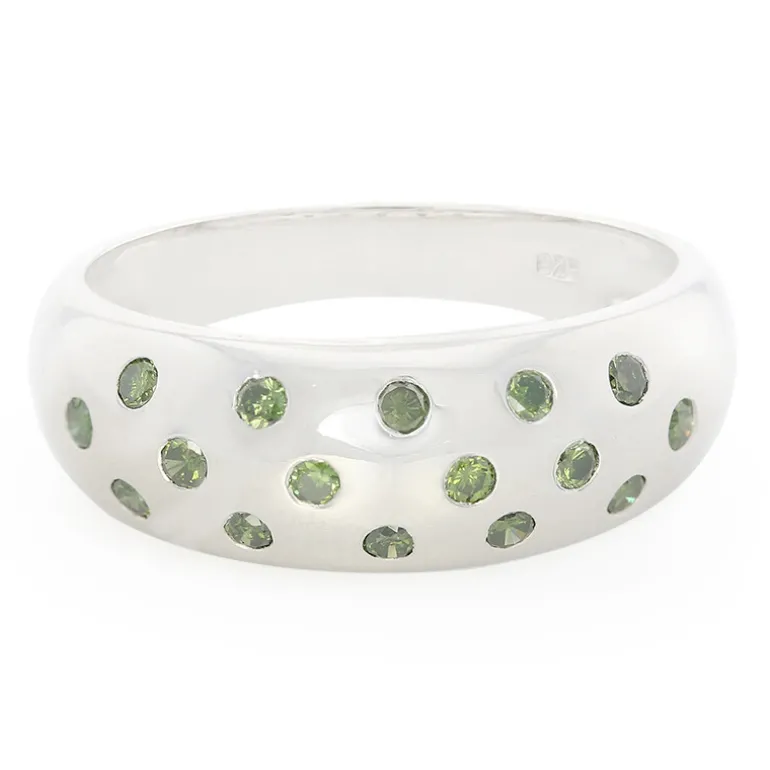 Entdecken Sie das faszinierende Funkeln unseres Rings aus Smaragdgrünem Diamant und Sterlingsilber. Dieses Schmuckstück rühmt sich einer Kollektion von 16 leuchtend smaragdgrünen Diamanten, von denen jeder sorgfältig in eine runde Brillantform geschliffen wurde, mit einem Gesamtkaratgewicht von 0,26 ct, die eine schillernde Konstellation über das Band bilden. Der aus hochwertigem 925er Sterling Silber gefertigte Ring wiegt ca. 2,55 Gramm und ist auf Langlebigkeit und Eleganz ausgelegt. Die verspielte Anordnung der Steine entlang des 21×20,5 mm großen Rings bietet eine moderne Variante klassischer Raffinesse, die sich sowohl für das tägliche Tragen als auch als Ergänzung zur Abendgarderobe eignet. Dieser Ring ist das unverzichtbare Accessoire für alle, die einen Farbtupfer und einen Hauch von Funkeln in ihrer Schmucksammlung schätzen.