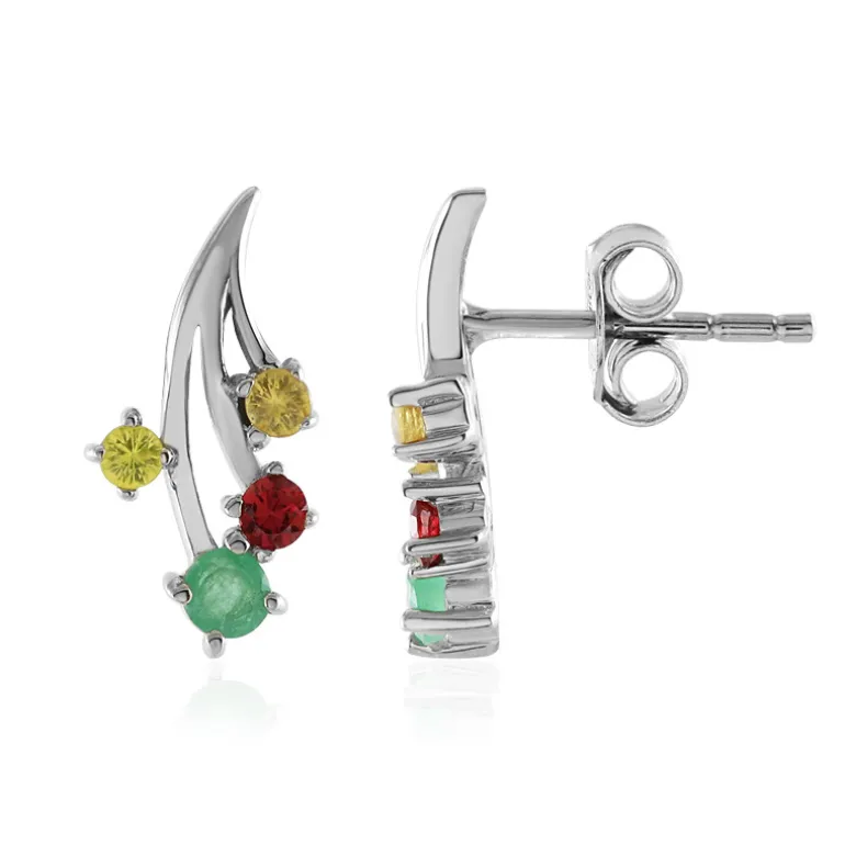 Entdecken Sie das faszinierende Farbenspiel dieser schicken, platinierten Ohrringe aus 925er Sterlingsilber mit brasilianischen Socoto-Smaragden und Madagaskar-Saphiren von insgesamt 0,517 Karat. Die Edelsteine im Rundschliff glänzen in einem modernen Design, das jedes Ensemble mühelos aufwertet. Kombinieren Sie diese Schätze mit Ihrem Lieblingscocktailkleid oder verleihen Sie Ihrer täglichen Bürokleidung einen Hauch von Glanz.
