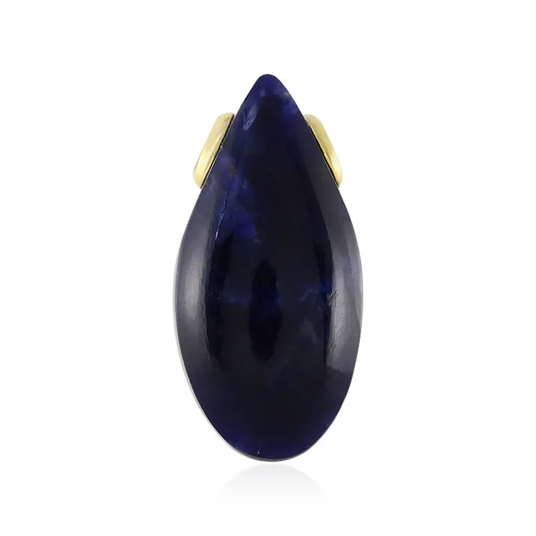 Dieser bezaubernde Anhänger ist mit einem 7,65ct Sodalith-Edelstein besetzt, der für seinen satten, königsblauen Farbton bekannt ist. Der Stein wird elegant in einem ausgefallenen Cabochon-Schliff mit einer Größe von ca. 20 x 10 mm präsentiert und in einer Fassung aus 925er Sterlingsilber mit luxuriöser Goldauflage gehalten. Seine schlanke elliptische Form verleiht klassischen Schmuckstücken eine moderne Note und macht ihn zu einem vielseitigen Accessoire, das sich für jeden Anlass eignet, von lässig tagsüber bis hin zu anspruchsvollen Abendveranstaltungen. Kombinieren Sie diesen Anhänger mit einer einfachen Goldkette, um das grüne Blau hervorzuheben, oder kombinieren Sie ihn mit ergänzenden Accessoires, um einen stilvollen Look zu kreieren.