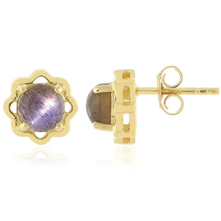 Indischer Sonnenstein Katzenauge Goldplattierte Ohrringe, 1,575ct