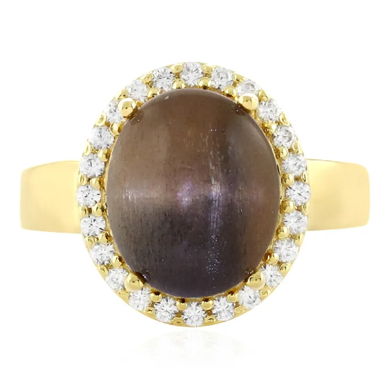 Indischer Katzenaugen-Sonnenstein Goldplattierter Silberring, 6,29ct