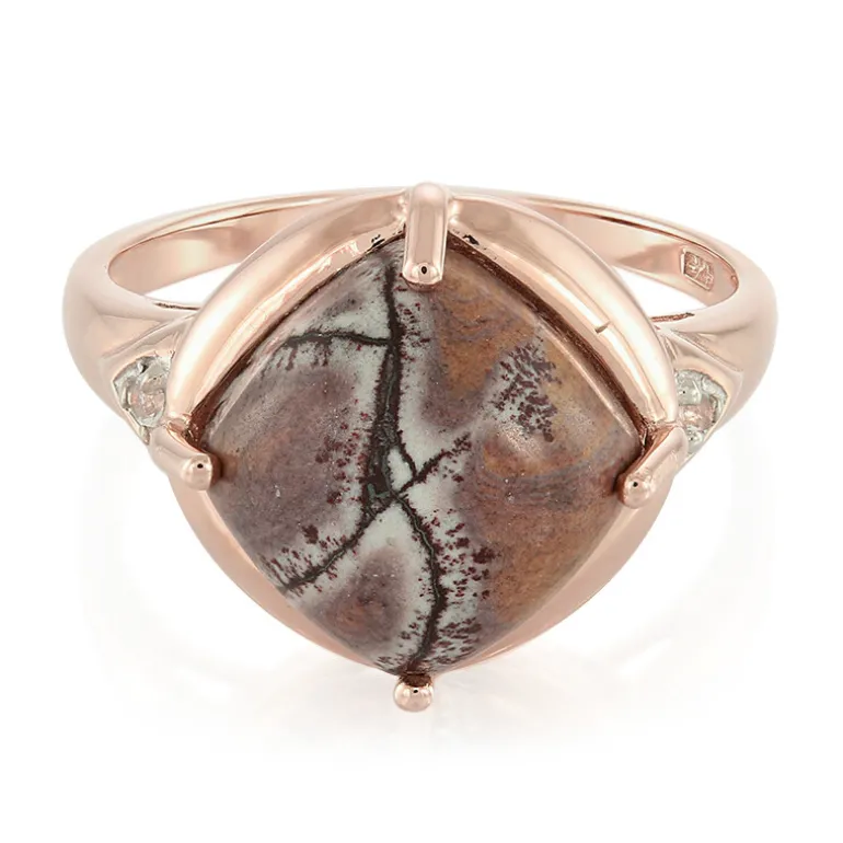 Mexikanischer Sonora-Dendrit-Jaspis Ring aus roséfarbenem Silber, 3,66ct