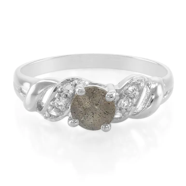 Rumänischer Spektrolith & Weißer Topas Silberring, 0,525ct