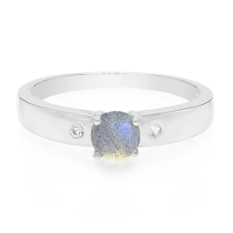 Rumänischer Spektrolith & Weißer Topas Sterling Ring, 0,485 ct