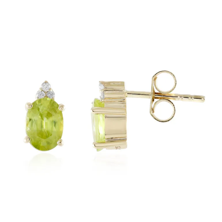 Entdecken Sie die lebendige Anziehungskraft dieser exquisiten Madagaskar Sphene & Zirkon Ohrringe, die in glänzendem 9K Gelbgold gefertigt sind. Jeder Ohrring besteht aus einem Sphene im Ovalschliff, der durch zierliche kambodschanische Zirkon-Akzente ergänzt wird und ein Gesamtkaratgewicht von 1,815 ct aufweist. Perfekt, um Ihrem Alltag einen Farbakzent zu verleihen oder Ihre Ohrläppchen zu besonderen Anlässen zu schmücken. Kombinieren Sie diese funkelnden Schätze mit einem dezenten Ensemble, um ihre natürliche Schönheit zur Geltung zu bringen.