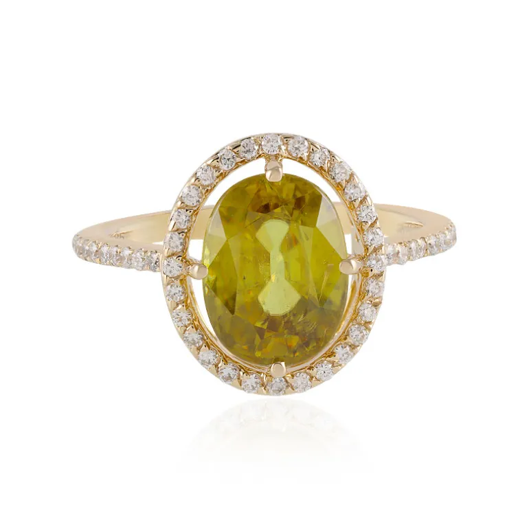 Madagaskar Sphene 585 Gold Ring, 3,86ctw Diamanten