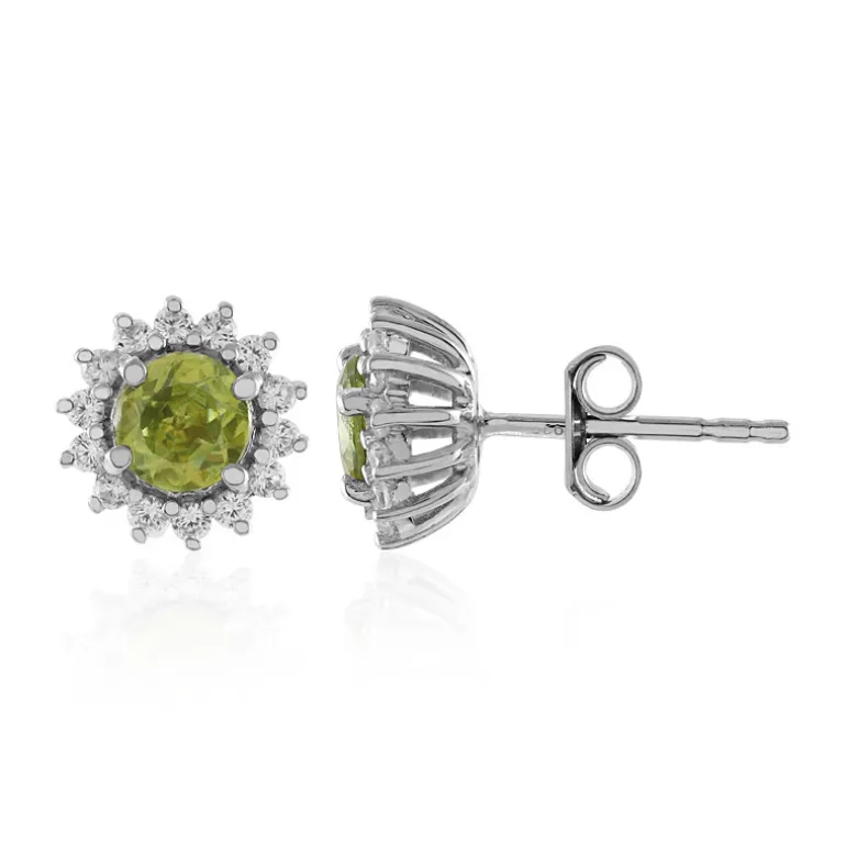 Entdecken Sie das verführerische Funkeln dieser atemberaubenden Ohrringe aus Sterlingsilber mit glänzenden, rund geschliffenen Sphene-Edelsteinen aus Madagaskar (0,684 Karat), die von brillanten Zirkon-Akzenten aus Kambodscha (0,532 Karat) umgeben sind. Jeder Ohrring strahlt in einem olivgrünen Farbton, der das Licht wunderschön einfängt und sie zu einem vielseitigen Accessoire für legere und formelle Kleidung macht. Diese Ohrringe sind perfekt, um jedem Ensemble einen Hauch von Eleganz zu verleihen, und werden ein geschätzter Bestandteil Ihrer Schmucksammlung sein.