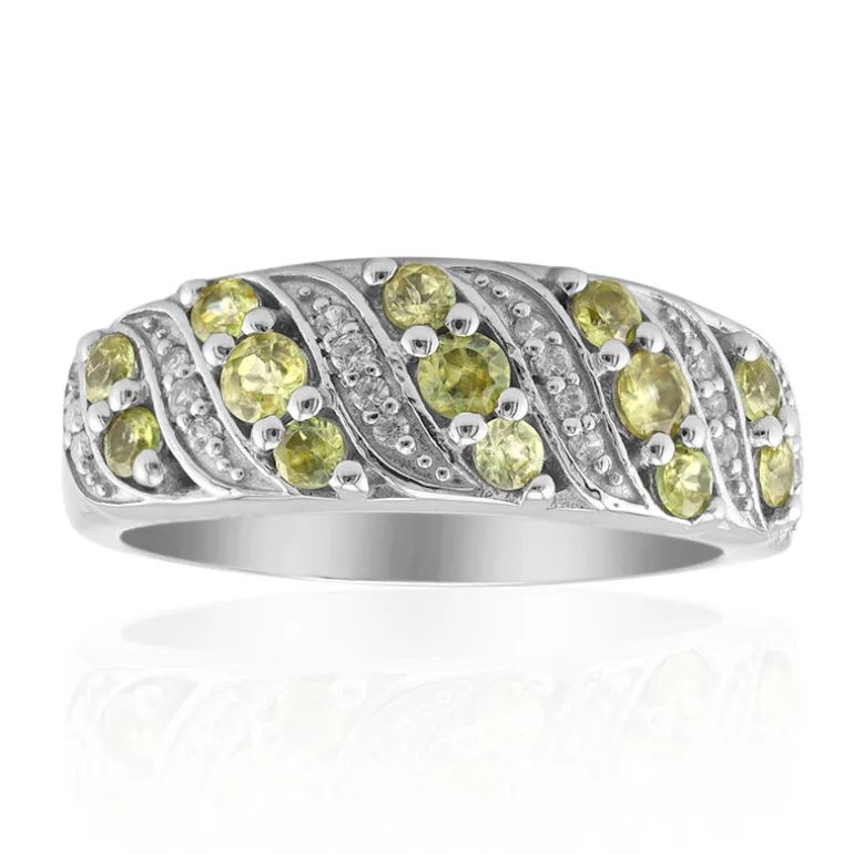 Entdecken Sie die Anziehungskraft der Sphene aus Sri Lanka, die in diesem wunderschön gearbeiteten Ring aus Sterlingsilber präsentiert wird. Mit insgesamt 0,738 Karat rundgeschliffener Sphene und funkelnden Zirkonen aus Tansania verziert, fängt dieser Ring bei jeder Bewegung mühelos das Licht ein. Seine detailreiche Veredelung verstärkt die leuchtende Qualität und macht ihn zu einer atemberaubenden Ergänzung sowohl für legere als auch für formelle Anlässe. Dieses Schmuckstück ist ideal für Liebhaber von Edelsteinen und zelebriert die natürliche Schönheit von Sphene und den Glanz von Zirkonen. Dieses strahlende und zeitlose Accessoire wird Sie zu Komplimenten und Blicken einladen.