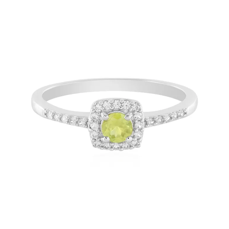 Entdecken Sie die subtile Anziehungskraft dieses Madagaskar-Sphäen-Sterlingsilberrings. Der zentrale Edelstein glänzt mit einem Gewicht von 0,411 Karat und wird von einem Halo aus funkelnden kambodschanischen Zirkonen umrahmt. Das platinierte Band aus 925er Sterlingsilber mit einem Gewicht von ca. 1,93 g ergänzt auf elegante Weise den lebhaften Grünton des Sphene. Dieser Ring ist ideal, um der Alltagskleidung oder besonderen Anlässen einen Hauch von Raffinesse zu verleihen. Sein Gesamtgewicht von 0,72 Karat und sein modernes Design machen ihn zu einer vielseitigen Ergänzung für jede Schmucksammlung.