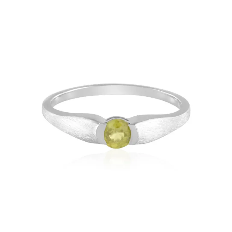 Entdecken Sie die schillernde Schönheit Madagaskars mit diesem elegant gestalteten Ring, der einen Sphene im Brillantrundschliff von 0,558 Karat präsentiert. Gefertigt aus hochwertigem 925er Sterlingsilber und veredelt mit einer glatten Platinbeschichtung, kombiniert dieses exquisite Stück Langlebigkeit mit einem luxuriösen Glanz. Die einzigartige, gebürstete Textur des Bandes hebt den leuchtenden grün-gelben Farbton des Sphene hervor und verleiht dem klassischen Design eine moderne Note. Dieser Ring eignet sich sowohl für die Freizeit als auch für formelle Anlässe und ist eine vielseitige Ergänzung für jede Schmucksammlung.