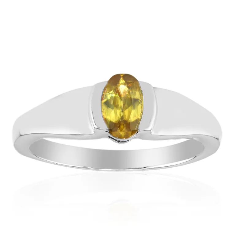 Entdecken Sie die fesselnde Anziehungskraft dieses Silberrings aus Sri Lanka mit einem strahlenden Edelstein von 0,453 Karat im Ovalschliff. Gefertigt aus 925er Sterlingsilber und einem exquisiten Platin-Finish, glänzt dieser Ring mit raffinierter Eleganz. Sein zierliches Design von 20×19 mm sorgt für einen bequemen Sitz, perfekt für den Alltag oder besondere Anlässe. Der sonnengelbe Farbton des Sphene ist vielseitig und passt sowohl zu legerer Alltagskleidung als auch zu Abendgarderobe mit einem Hauch von Farbe.