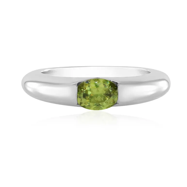 Entdecken Sie die lebendige Anziehungskraft dieses Rings aus Madagaskar-Sphäen-Silber. Der oval geschliffene Edelstein mit einem Gewicht von 0,641 Karat ist ein Zeugnis für raffinierten Geschmack. Das hochwertige 925er Sterlingsilberband unterstreicht den leuchtend grünen Farbton des Sphene und macht ihn zu einem vielseitigen Accessoire. Ob für einen Tag im Büro oder einen Abend beim Ausgehen, dieser Ring wird Ihr Ensemble mit unvergleichlicher Eleganz ergänzen.