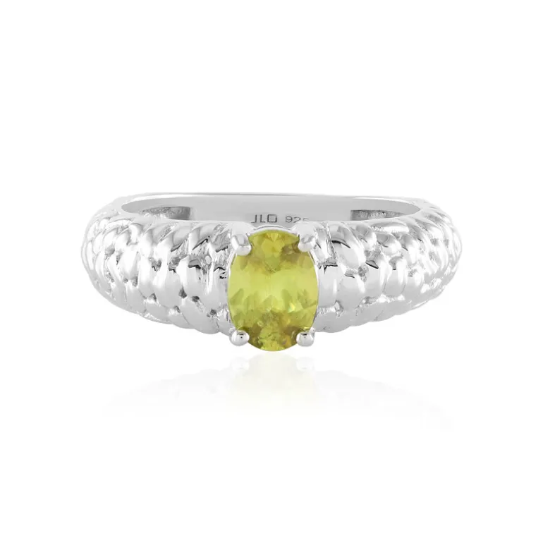 Entdecken Sie die Faszination des Madagaskar Sphene Silberrings mit einem Sphene im Brillantschliff (0,71 Karat) in poliertem, platiniertem Sterlingsilber. Dieses elegante Schmuckstück ist ein lebendiger Edelstein, der jedem Ensemble Raffinesse verleiht. Er ist sowohl für den Tag als auch für den Abend geeignet und passt sowohl zu legeren als auch zu formellen Anlässen. Werten Sie Ihre Schmucksammlung mit diesem einzigartigen Schmuckstück auf.