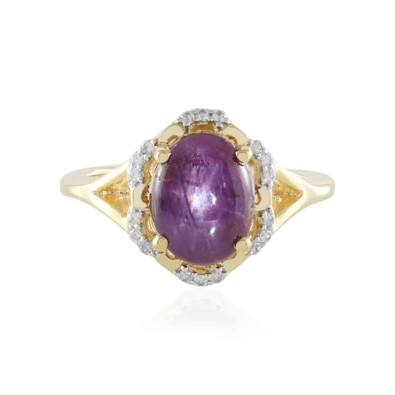 Wir präsentieren einen bezaubernden Star Ruby Ring mit einem 3,33-karätigen Cabochon aus Madagaskar, der elegant in vergoldetes 925er Sterlingsilber gefasst ist. Umgeben von 18 Zirkonsteinen im Rundschliff aus Kambodscha bietet dieser Ring ein brillantes Funkeln. Mit seinen Maßen von 24×20 mm ist er perfekt, um jedem Outfit einen Hauch von Eleganz zu verleihen. Dieses Schmuckstück ist ideal für besondere Anlässe oder für das tägliche Tragen und ist ein wahres Statement für Luxus.