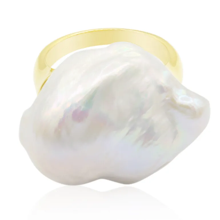 Entdecken Sie den skurrilen Charme dieses Rings aus chinesischen Süßwasserperlen, der den magischen Glanz der Schätze des Meeres verkörpert. Gefertigt aus 925er Sterlingsilber mit einer prächtigen Goldplattierung, besticht dieser Ring durch eine große und einzigartig geformte Perle mit einer Größe von ca. 21×20 mm. Seine organische Form verleiht jedem Ensemble einen Hauch von Raffinesse und macht ihn sowohl für ein legeres Brunch als auch für elegante Abendveranstaltungen perfekt. Die beachtlichen 4,32 g des Edelmetalls sorgen für ein angenehmes und luxuriöses Tragegefühl am Finger. Machen Sie ihn zum gesprächsanregenden Mittelpunkt Ihrer Schmucksammlung.