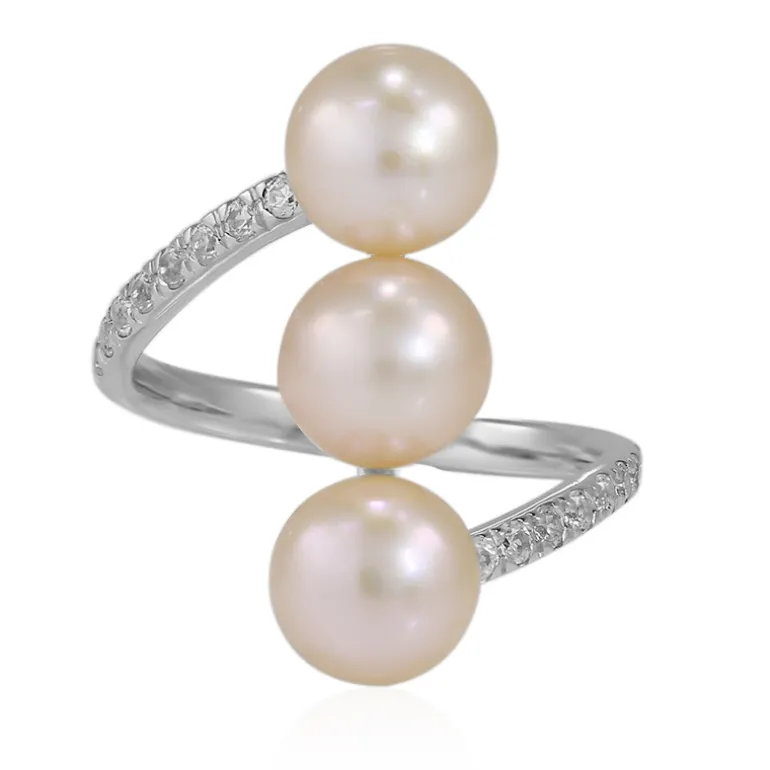 Dreifacher Süßwasserperlenring 925 Silber, China 7mm