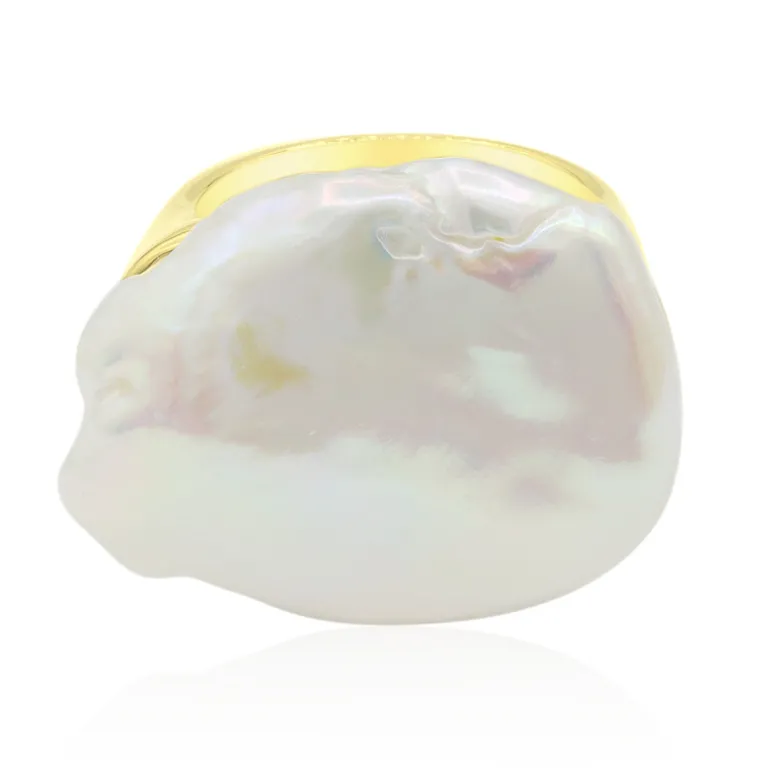 Dieser Ring aus vergoldetem 925er Sterlingsilber ist ein wahres Meisterwerk. Er ist mit einer schimmernden, übergroßen chinesischen Süßwasserperle besetzt. Mit einer fesselnden, ausgefallenen Form von ca. 24×19 mm ist sie ein Statement, das Aufmerksamkeit erregt. Die organische Form der Perle wird durch den warmen Schimmer der Goldplattierung hervorgehoben und verleiht Ihrer Hand einen Hauch von Opulenz. Dieser außergewöhnliche Ring ist eine vielseitige Ergänzung für jede Schmucksammlung und eignet sich ideal zur Aufwertung von Abendgarderobe oder zum Veredeln von Freizeitoutfits.