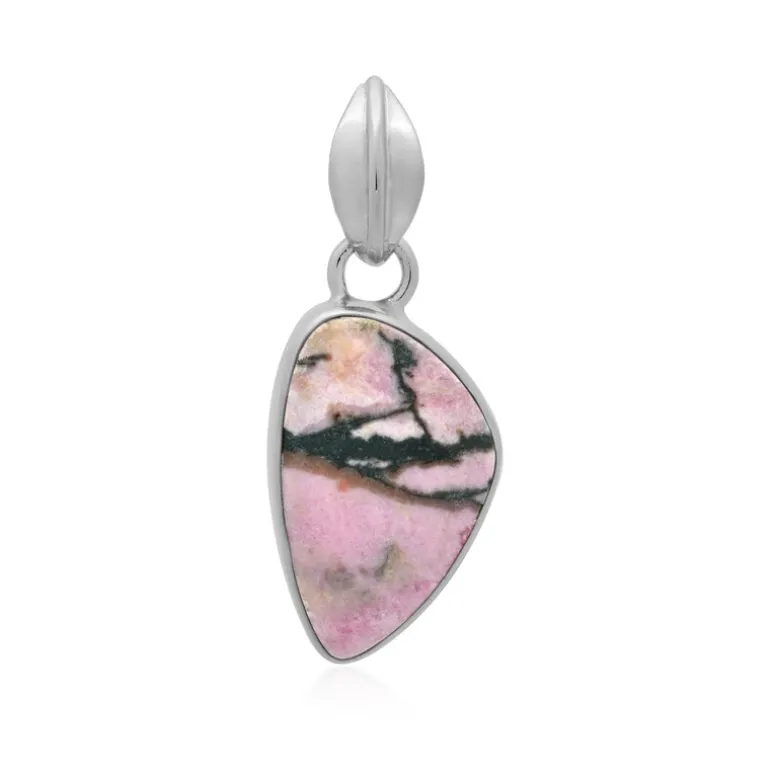 Entdecken Sie die mystische Anziehungskraft dieses einzigartigen Anhängers aus Sulawesi-Rhodonit, der vom traditionellen balinesischen Barong inspiriert ist. Der 9-karätige Edelstein im Cabochon-Schliff stammt aus Indonesien und zeigt eine faszinierende Verschmelzung von rosa Schattierungen mit schwarzen Mustern, die an alte Kunst erinnern. Der Anhänger aus 925er Sterlingsilber mit Platin-Finish wiegt etwa 2 Gramm und misst 32,5 x 14 mm. Sein auffälliges Design und seine Farbpalette machen ihn zu einem vielseitigen Accessoire, das sowohl zu legeren als auch zu formellen Outfits einen Hauch von Eleganz verleiht. Lassen Sie sich mit diesem bezaubernden Schmuckstück vom Geist Balis verzaubern.