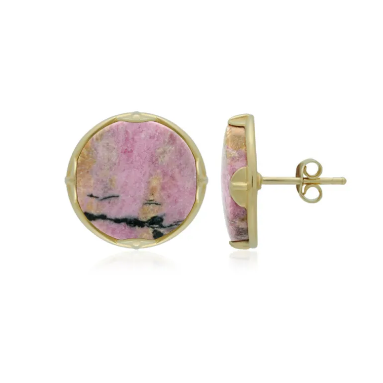 Entdecken Sie die Faszination Indonesiens mit diesen exquisiten Sulawesi-Rhodonit-Ohrringen. Mit insgesamt 17 Karat runden Cabochon-Steinen, die in luxuriöses 925er Sterlingsilber mit Goldplattierung gefasst sind, versprüht jeder Ohrring einen einzigartigen Charme. Die zarten Rosatöne und die kühnen Muster der Edelsteine vermitteln einen Hauch von natürlicher Eleganz, die sowohl tagsüber als auch abends perfekt zur Geltung kommt. Lassen Sie diese atemberaubenden Ohrringe das Herzstück Ihrer Schmucksammlung sein und sorgen Sie bei jeder Gelegenheit für Gesprächsstoff.