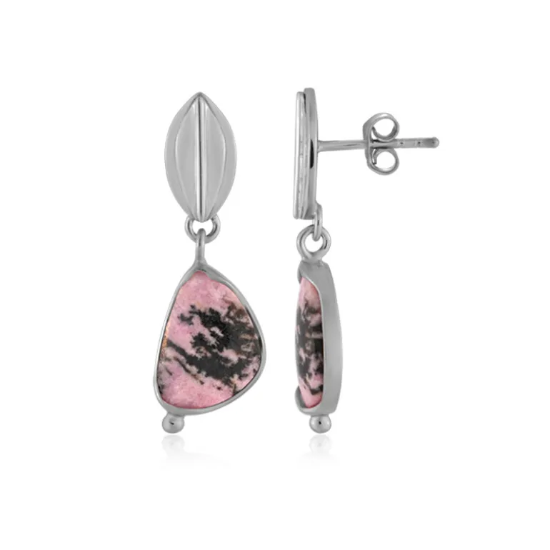 Indonesische Rhodonit-Sterling-Tropfen-Ohrringe, 6,5ct