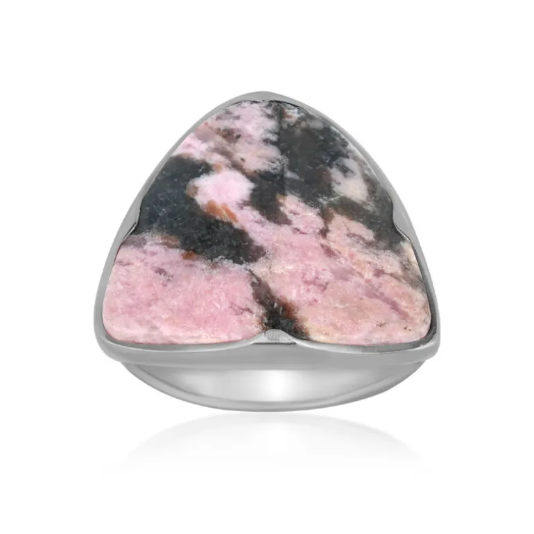 Entdecken Sie die Faszination Indonesiens mit diesem Ring aus Sterlingsilber, der einen 11-karätigen Sulawesi-Rhodonit im Fancy-Cabochon-Schliff präsentiert. Der auffällige Edelstein zeichnet sich durch eine harmonische Mischung aus rosa und schwarzen Farbtönen aus und ist in ein elegantes 925er Sterlingsilber gefasst, das für einen verstärkten Glanz plattiert wurde. Mit seinen beeindruckenden Maßen von 20×16 mm ist er ein auffälliges Schmuckstück für Ihre Sammlung. Er ist ideal, um einem einfarbigen Outfit einen natürlichen Farbakzent zu verleihen oder als Mittelpunkt eines Ensembles für einen besonderen Anlass.