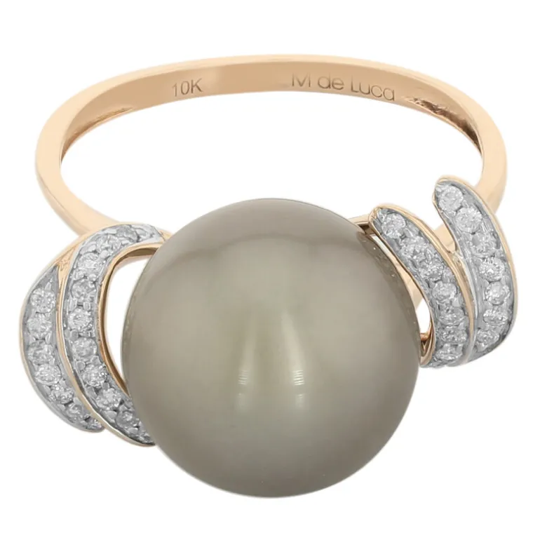 11,5 mm Tahiti-Perle 10K Rose Gold Ring, 0,18ct Diamanten