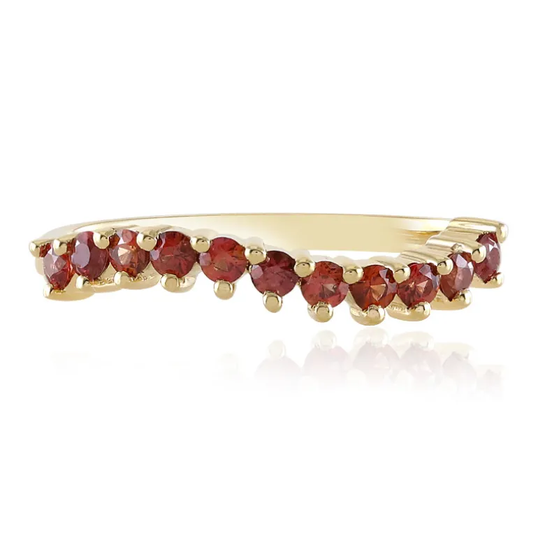 Schmücken Sie Ihren Finger mit diesem exquisiten Goldring mit tansanischem Rubin. Mit 11 runden Rubinen im Brillantschliff mit einem Gesamtkaratgewicht von 0,399 ct, die jeweils etwa 2 mm groß sind. Dieses elegante Schmuckstück aus 375er Gold ist perfekt, um jedem Outfit einen Hauch von Luxus zu verleihen. Es ist ideal für Abendausflüge oder besondere Anlässe und lässt sich sowohl mit legerer als auch mit formeller Kleidung kombinieren.