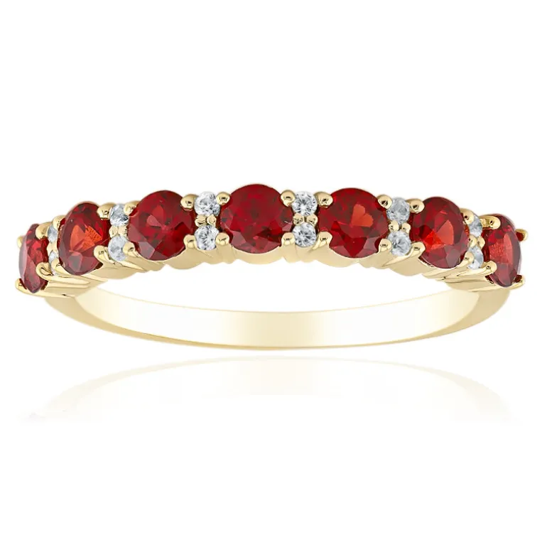 Tauchen Sie ein in die lebendige Anziehungskraft dieses Goldrings mit tansanischem Rubin. Mit sieben Rubinen im Rundschliff mit einem Gesamtgewicht von 0,931 ct, die elegant mit kambodschanischen Zirkonen auf einem 375er Goldband gefasst sind, strahlt dieses Schmuckstück Eleganz aus. Er eignet sich perfekt für abendliche Anlässe oder als raffinierter Akzent für die Alltagskleidung und passt mit seinen auffälligen Rottönen sowohl zu warmen als auch zu neutralen Tönen.