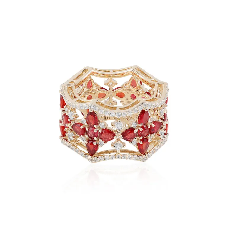 Genießen Sie die Opulenz dieses exquisiten Rings mit tansanischem Rubin, der elegant aus glänzendem 18-karätigem Gold gefertigt ist. Dieses Meisterwerk besticht durch sein filigranes Design, das mit leuchtenden Rubinen verziert ist, die Leidenschaft und Romantik symbolisieren. Die einzigartigen Abmessungen von 23×23 mm sind ein kühnes Statement, mit dem Sie bei Galaveranstaltungen oder raffinierten Dinners Eindruck machen können. Kombinieren Sie dieses atemberaubende Stück mit einem eleganten Kleid, um ein atemberaubendes Ensemble zu vervollständigen.