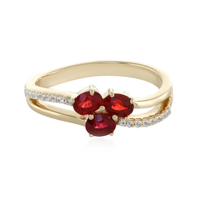 Enthüllen Sie die Faszination tansanischer Rubine mit diesem exquisiten Ring aus 9-karätigem Gold. Ein Trio von Rubinen im Ovalschliff mit einem Gesamtgewicht von 0,817 Karat, eingebettet in schimmernde Zirkonakzente aus Kambodscha. Die Zirkone im Rundschliff von 0,114 Karat sorgen für einen Hauch von Funkeln und ergänzen die tiefroten Farbtöne. Mit einem Gewicht von ca. 2,51 g ist dieser Ring ein Beweis für elegante Handwerkskunst und zeitloses Design. Er eignet sich perfekt für eine elegante Abendveranstaltung oder als luxuriöses Accessoire für den Alltag und versprüht Anmut und Charme.