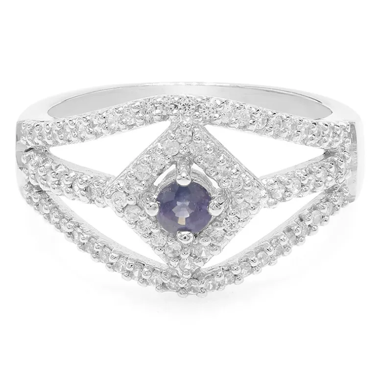 Lassen Sie Ihren Finger mit diesem geometrisch inspirierten Ring aus 925er Sterlingsilber erstrahlen, der einen bezaubernden tansanischen Saphir von 0,21 Karat präsentiert. Seine runde Brillanz wird von 76 funkelnden Zirkonen aus Kambodscha mit einem Gesamtgewicht von 0,543 Karat kontrastiert, die in ein kompliziertes Design eingefasst sind, das moderne Eleganz verkörpert. Dieser Ring ist ein vielseitiges Schmuckstück und eignet sich perfekt, um Ihre Büro- oder Abendgarderobe mit Raffinesse zu ergänzen.