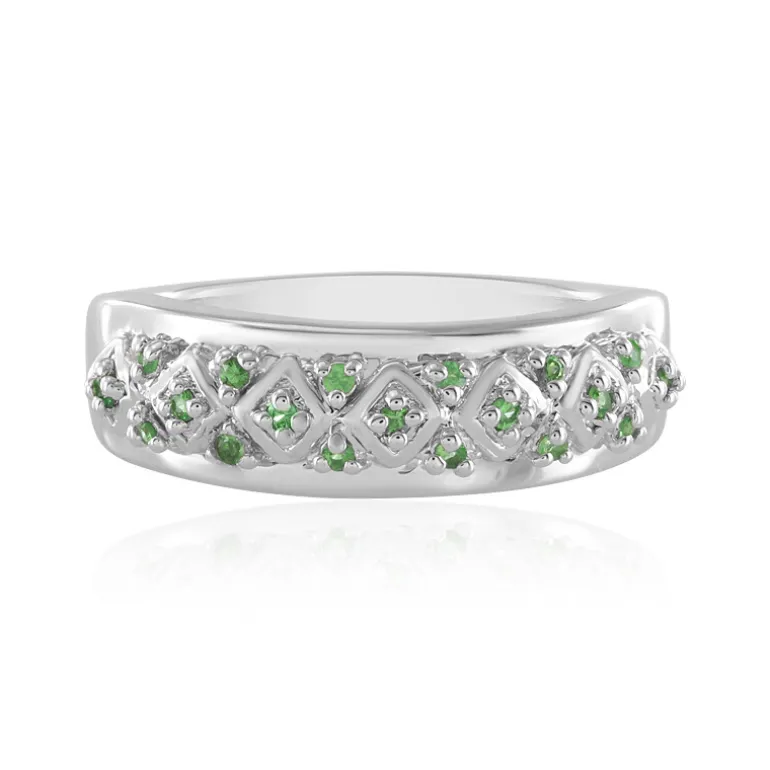 Entdecken Sie die bezaubernde Anziehungskraft dieses Rings aus Sterlingsilber, der mit einem harmonischen Geflecht aus 19 Tsavorit-Edelsteinen im Rundschliff verziert ist. Mit einem Gesamtkaratgewicht von 0,108 ct strahlen diese Edelsteine einen lebhaften grünen Farbton aus, der die Essenz der üppigen Landschaft Tansanias einfängt. Das handgefertigte Silber wiegt etwa 2,9 g und bietet ein zartes und dennoch haltbares Design, das zu einer Vielzahl von Anlässen passt. Ob Sie sich für eine Abendveranstaltung herausputzen oder Ihrer Alltagskleidung einen Hauch von Eleganz verleihen, dieser Ring ist eine vielseitige und stilvolle Wahl.