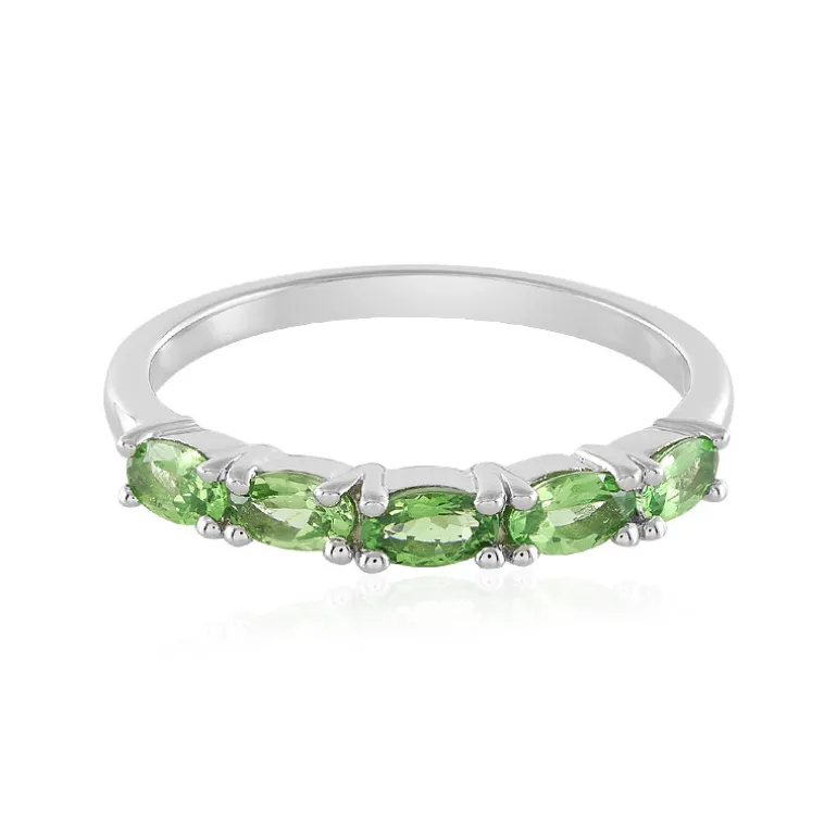 Entdecken Sie die bezaubernde Schönheit unseres Rings Vibrant Tanzanian Tsavorite mit einem Quintett aus oval geschliffenen Edelsteinen von insgesamt 1,016 Karat. Die sattgrünen Tsavoriten sind sorgfältig in hochwertiges 925er Sterlingsilber gefasst und mit einer erstklassigen Platinveredelung für dauerhaften Glanz versehen. Diese 22×22 mm große Kreation, die traditionelle Eleganz mit modernem Flair verbindet, ist vielseitig genug, um sowohl im Alltag als auch bei besonderen Anlässen getragen zu werden. Akzentuieren Sie eine klassische weiße Bluse oder ein pastellfarbenes Abendkleid mit diesem Schmuckstück für einen sofortigen gehobenen Look.