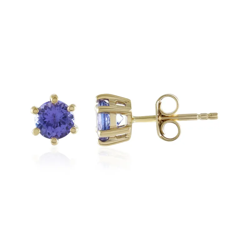 Diese atemberaubenden Tansanit-Ohrringe aus strahlendem 9-karätigem Gelbgold haben ein Gesamtkaratgewicht von 1,08 ct. Die runden Edelsteine aus Tansania strahlen einen leuchtend blauen Farbton aus, der sich für jeden Anlass eignet. Diese Ohrringe eignen sich sowohl für legere als auch für formelle Anlässe und verleihen Ihrem Look einen Hauch von Eleganz und Raffinesse. Kombinieren Sie sie mit einem eleganten Abendkleid oder einem schicken Tagesoutfit.