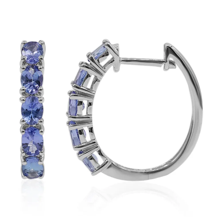 Entdecken Sie die Faszination dieser tansanischen Tansanit-Ohrringe, die sorgfältig aus glänzendem 10-karätigem Weißgold gefertigt sind. Jeder Ohrring ist mit fünf oval geschliffenen Tansaniten von insgesamt 1,786 Karat besetzt, die für ihren fesselnden blau-violetten Farbton bekannt sind. Diese raffinierten Creolen verleihen sowohl Tages- als auch Abendgarderobe mühelos einen Hauch von Eleganz. Sie sind perfekt für alle, die eine Mischung aus modernem Chic und zeitloser Anmut suchen, und stellen eine exquisite Ergänzung für jede Schmucksammlung dar.