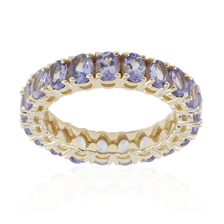 Dieser exquisite Tansanit-Goldring zeigt eine atemberaubende Reihe von Tansanit-Steinen, die wunderschön in ein glänzendes Goldband eingefasst sind. Die leuchtenden violetten Farbtöne der Steine machen ihn perfekt für den Abend oder besondere Anlässe. Kombinieren Sie es mit einem eleganten schwarzen Kleid oder einem stilvollen Abendkleid für einen auffallenden Look. Ideal für alle, die Eleganz und Raffinesse in ihrer Schmucksammlung suchen.