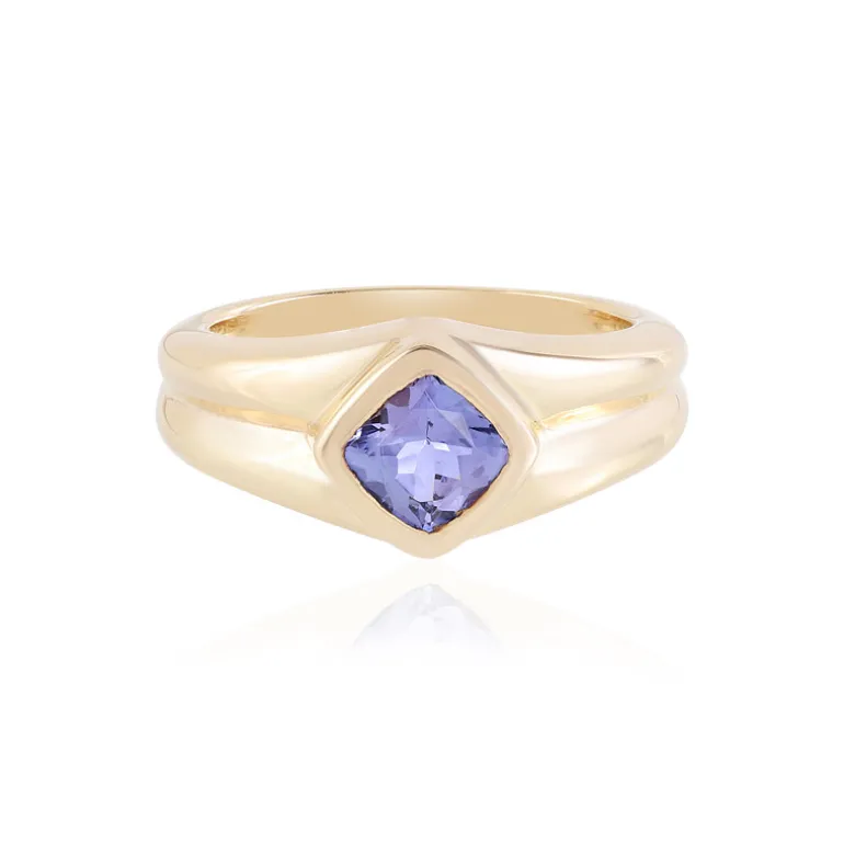 Entdecken Sie die Anziehungskraft dieses Tansanit-Herrenrings, der mit einem 1,125-karätigen Edelstein im Kissenschliff aus Tansania gefertigt wurde. Der 6 mm große Stein ist in glänzend vergoldetes 925er Sterlingsilber gefasst und wiegt ca. 5,15 g. Dieses exquisite Stück bietet einen Hauch von Raffinesse, perfekt für formelle Anlässe oder als raffinierter Akzent für legere Kleidung. Erhöhen Sie Ihren Stil mit diesem auffälligen und eleganten Accessoire.