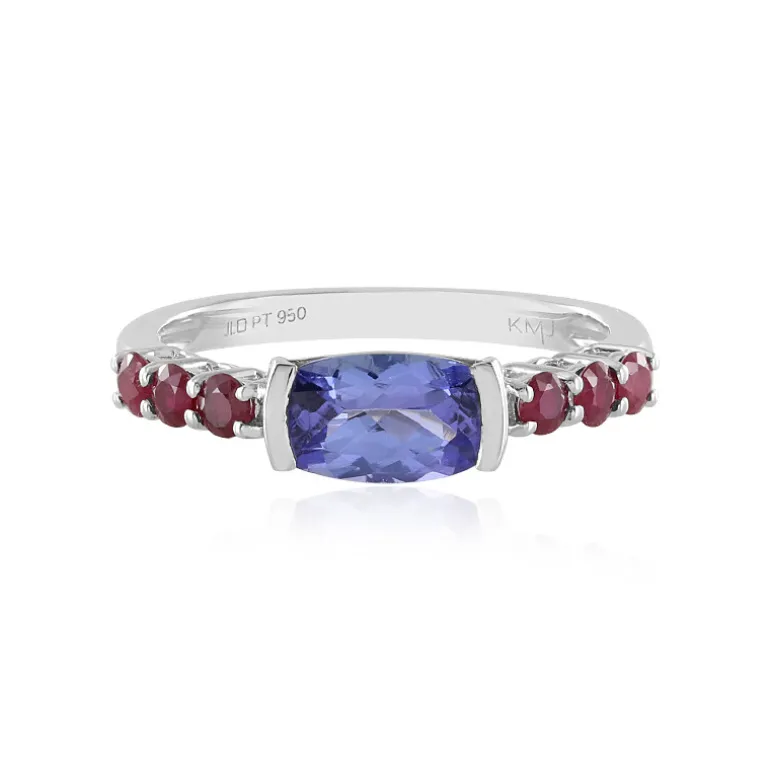 Tansanit 1,26ct 950 Platin Ring, Thai Rubine