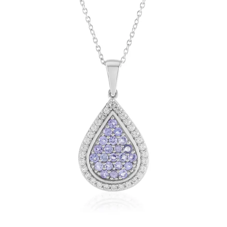 Erleben Sie zeitlose Eleganz mit unserer Teardrop-Halskette mit Tansaniten, einem Meisterwerk aus hochwertigem 925er Sterling Silber. Dieses atemberaubende Stück verfügt über 22 Tansanit-Steine im Rundschliff, die aus den malerischen Landschaften Tansanias stammen, mit einem Gesamtkaratgewicht von 0,792ct. Die violetten Edelsteine sind von 30 funkelnden Zirkonsteinen aus Kambodscha umgeben, die weitere 0,945 Karat zum Gesamtgewicht von 1,737 Karat beitragen. Die klassische Tropfenform des Anhängers und die Brillanz der Edelsteine ergeben ein harmonisches Design, das sich sowohl für formelle Anlässe als auch für den Alltag eignet. Die Halskette misst ca. 45,5 cm und passt damit perfekt zu jedem Dekolleté. Erweitern Sie Ihre Schmucksammlung mit diesem bezaubernden Anhänger, der Ihnen garantiert Komplimente einbringen wird.
