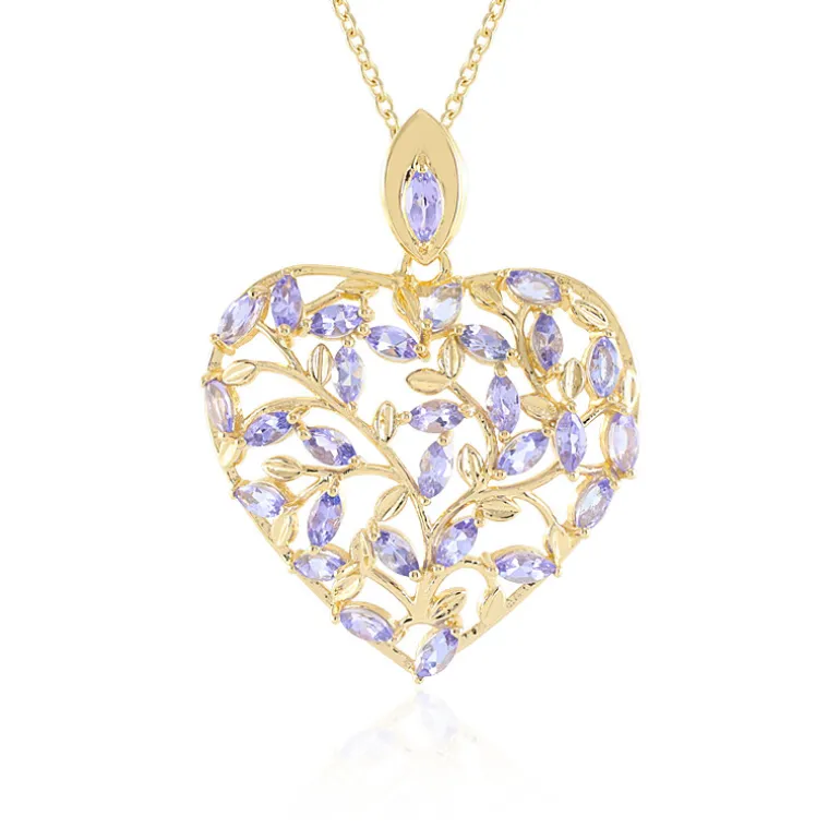 Entdecken Sie Liebe auf den ersten Blick mit unserer bezaubernden Tanzanite-Halskette im Marquise-Schliff. Fachmännisch aus 925er Sterlingsilber gefertigt und mit 2,034 Karat Tansaniten im Marquise-Schliff verziert, strahlt dieses Stück einen violett-blauen Farbton aus, der so tief ist wie der tansanische Himmel. Jeder Tansanit ist sorgfältig in einen herzförmigen Anhänger gefasst, der Zuneigung und Wärme symbolisiert. Die Vergoldung verleiht ihm einen zusätzlichen Hauch von Luxus und macht ihn vielseitig einsetzbar, sowohl tagsüber als auch abends. Ob über einer schlichten Bluse oder zu einem eleganten Abendkleid getragen, diese Halskette ist ein echter Hingucker.